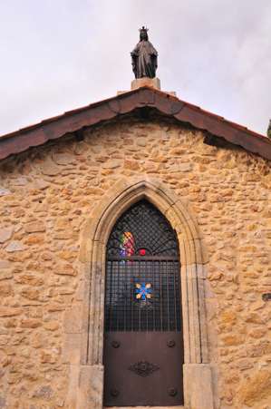 Aujourd’hui, des fers forgés sécurisent les fenêtres. On peut remarquer les pierres rougies par l’incendie. On remarque, sur le mur ouest, saint Pierre sur la mer de Galilée devant le mont Thabor, avec en bas de chaque côté, les poissons stylisés des premiers chrétiens, puis, à l’est, saint Paul avec les rayons qui l’ont aveuglé, le livre de ses épitres et l’épée de sa citoyenneté romaine. À l’intérieur, dans un coin, le Christ ensanglanté de San Juan de la Cruz (Saint-Jean de la Croix). Donnant sur l’extérieur, un vitrail (voir photo) offert par Mme Patient (pâte de verre de 2cm d’épaisseur) est protégé par une grille à l’extérieur. Tous les 2 ans, la Vierge reçoit une nouvelle patine. La mosaïque de l’autel est en cours d’élaboration. Des bancs attendent le pèlerin. À l’extérieur, une croix faite de 2 tôles remplace l’ancienne trop fragile.
